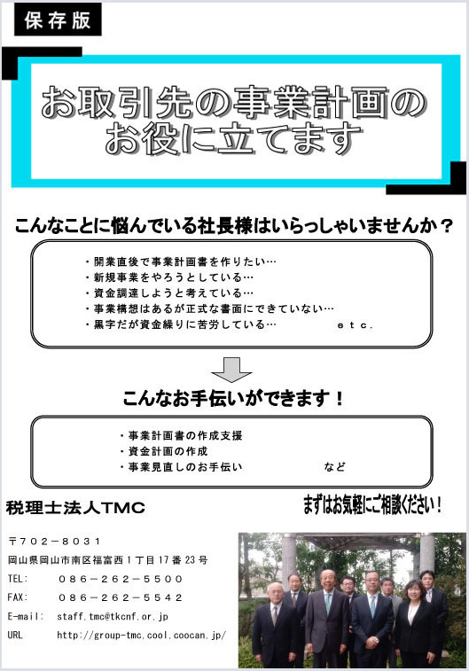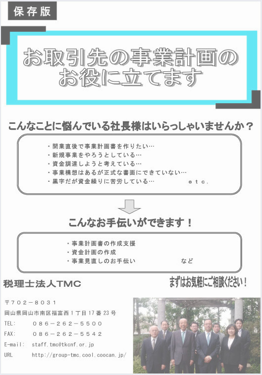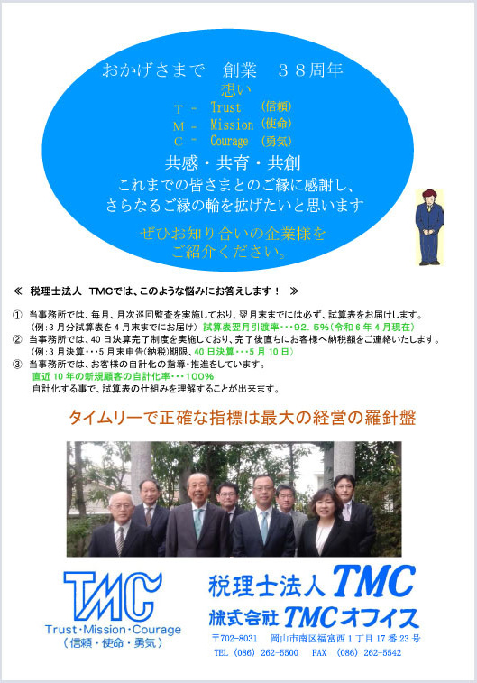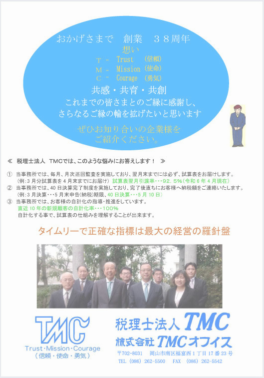 対応すべく、事業の形態を法人組織化し、税理士法人TMCとして新たな一歩を踏み出すことと