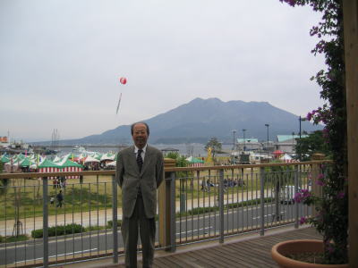 後ろに見えているのは桜島です。